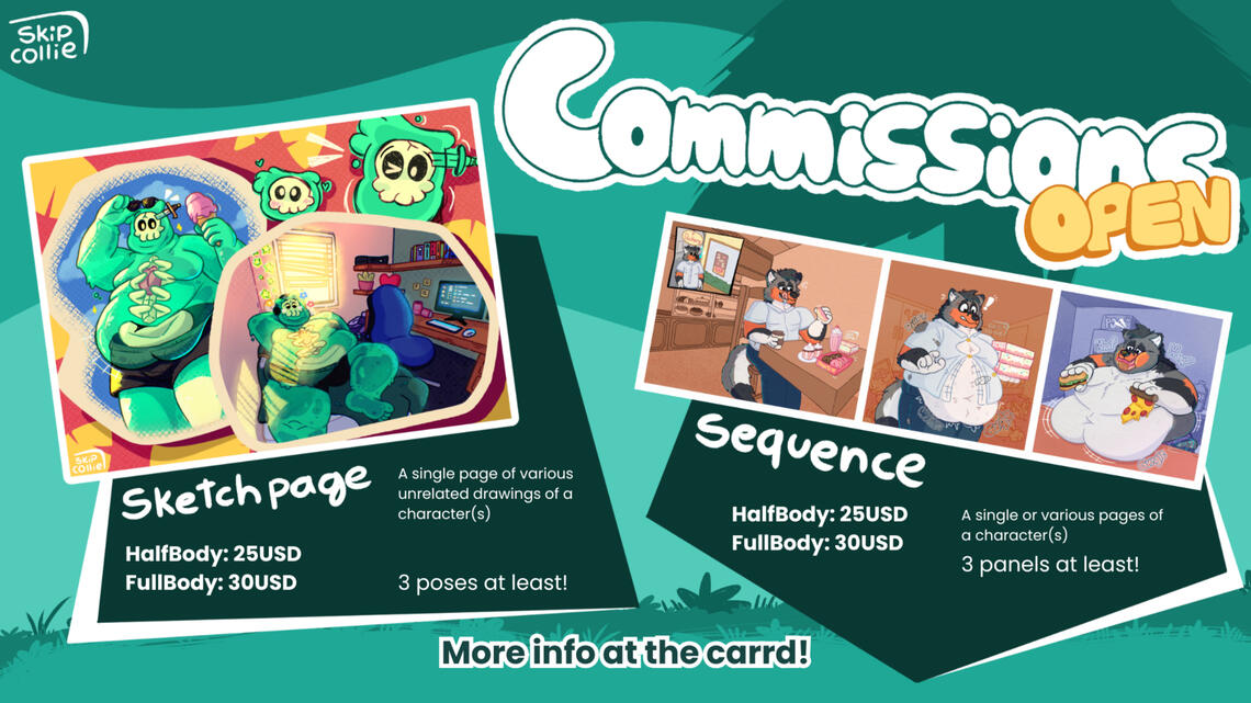 All commissions are paid in advance!Payment Method: I accept payments through PayPal (USD) or Pix (BRL, Brazil only);Pricing: All prices are listed in the price sheet (top of the document) and are subject to change based on the extras chosen, or the amount of panels for a sequence;Refunds: If you choose to cancel the commission before work has begun, a full refund will be processed (100%). If you choose to cancel the commission while it’s still in the drafting phase, a 50% refund will be processed. If the commission is finished, no refund will be processed.